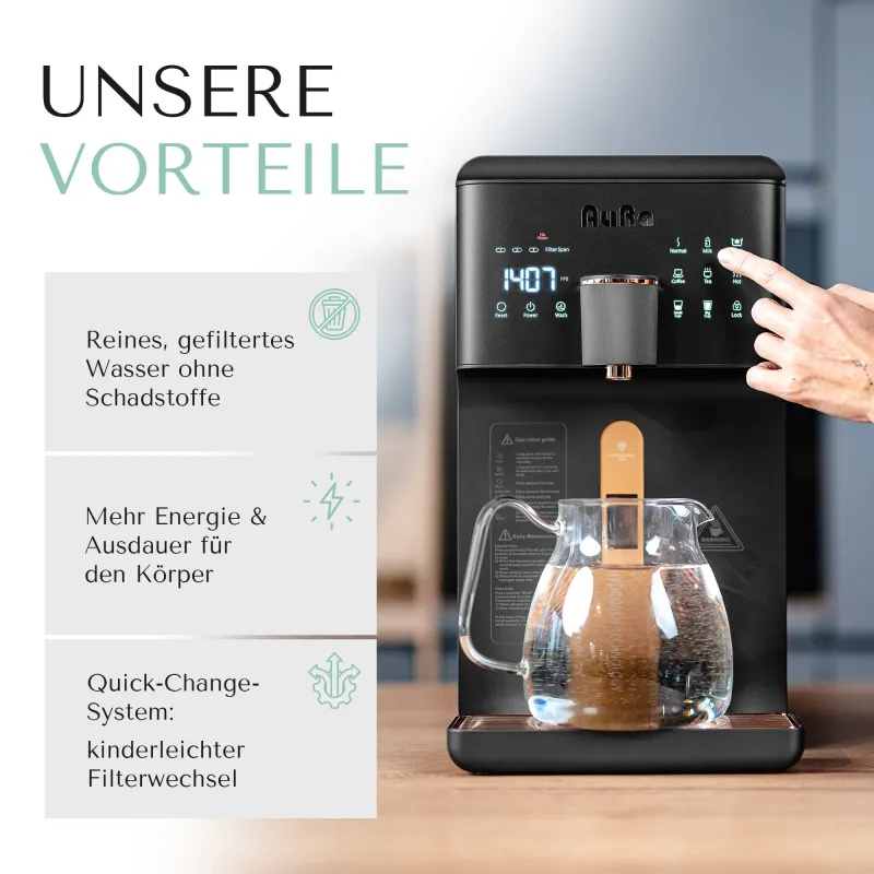 AURA Auftisch-Umkehrosmoseanlage mit Wasserstoff-Ionisator und Heißwasserfunktion