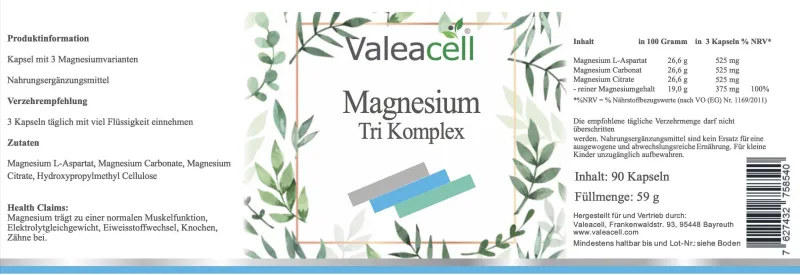 Entdecken Sie den Magnesium Tri-Komplex – eine innovative, vegane Nahrungsergänzung, die drei hochwertige Magnesiumverbindungen kombiniert: Magnesium L-Aspartat, Magnesiumcarbonat und Magnesiumcitrat. Diese einzigartige Formel sorgt für eine optimale Magnesiumaufnahme und unterstützt essenzielle Funktionen Ihres Körpers.
